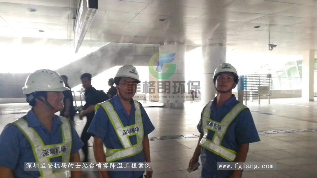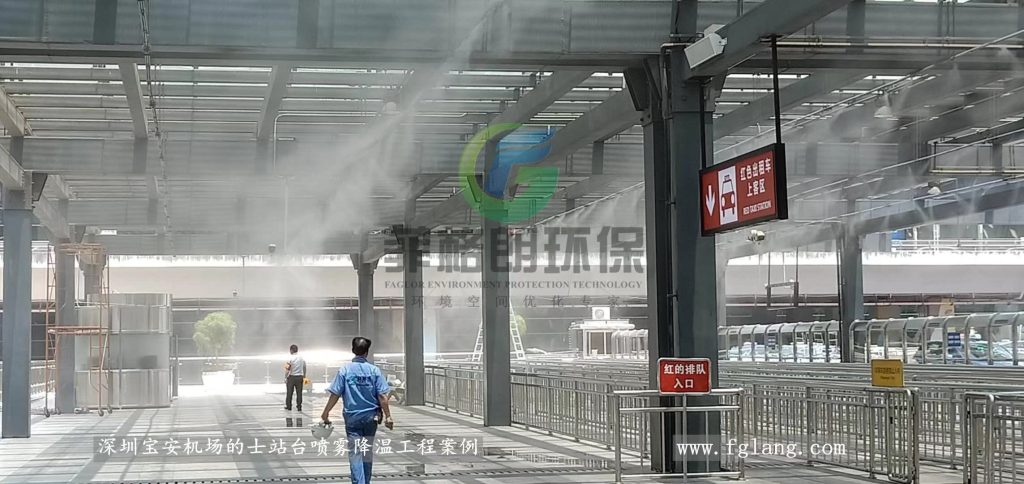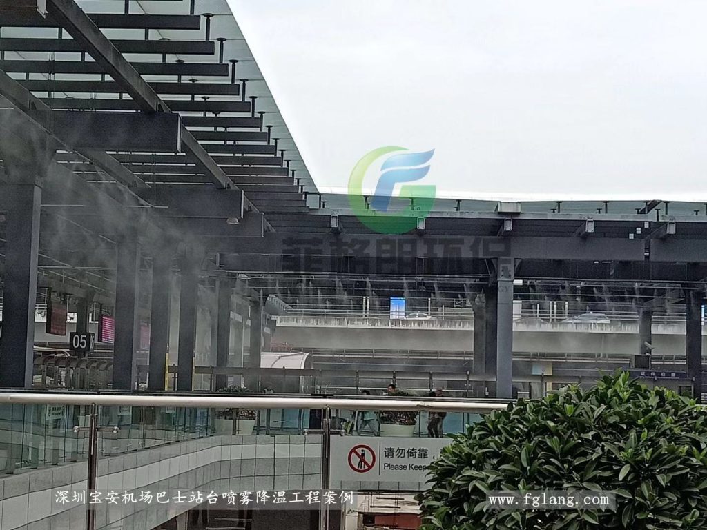 深圳宝安国际机场作为粤港澳大湾区核心交通枢纽,夏季高温时间长、客流量大,户外候车区及人行通道区域体感闷热,影响旅客舒适度。为此,机场引进菲格朗微米级高压雾森喷雾降温系统。