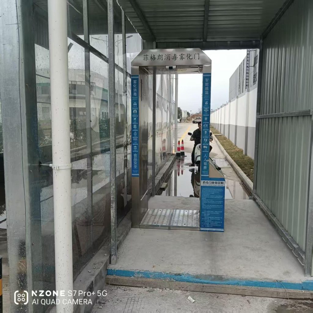 在生猪运输车辆进入厂区的大门口,部署了菲格朗全自动车辆消毒通道。该设备采用高压喷雾与喷淋组合技术,可对车底、车身、轮胎进行360度无死角喷淋消毒。配置智能感应启动系统,车辆通过时自动触发,消毒液配比精准,既保证消杀效果又节省药剂,有效阻止外来病原体进入生产区。
